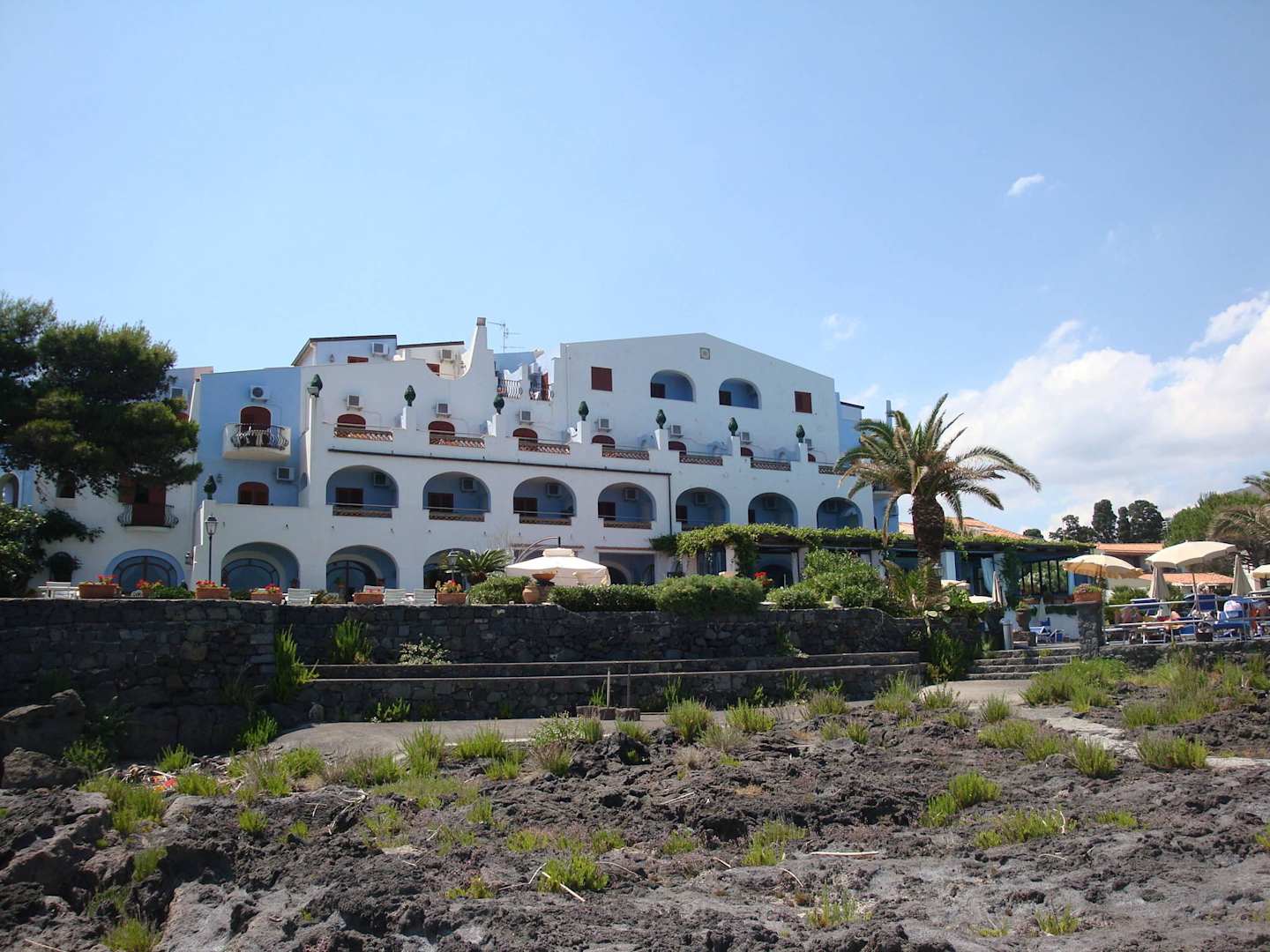 Blick vom "Felsstrand" auf das Hotel