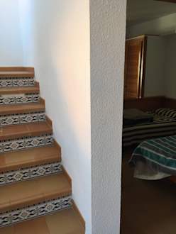 Treppenhaus, rechts das Zimmer 11