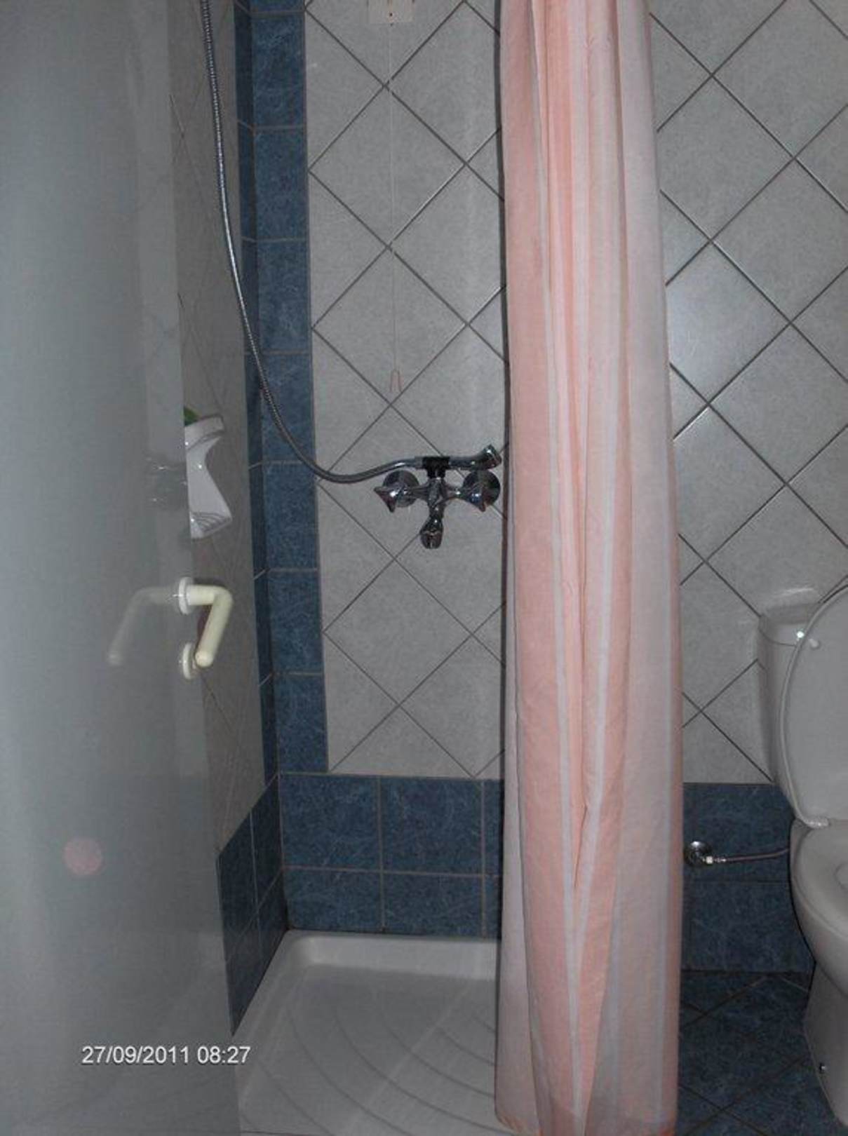 sehr kleine Dusche 75x75 cm mit Billig-Duschvorhang