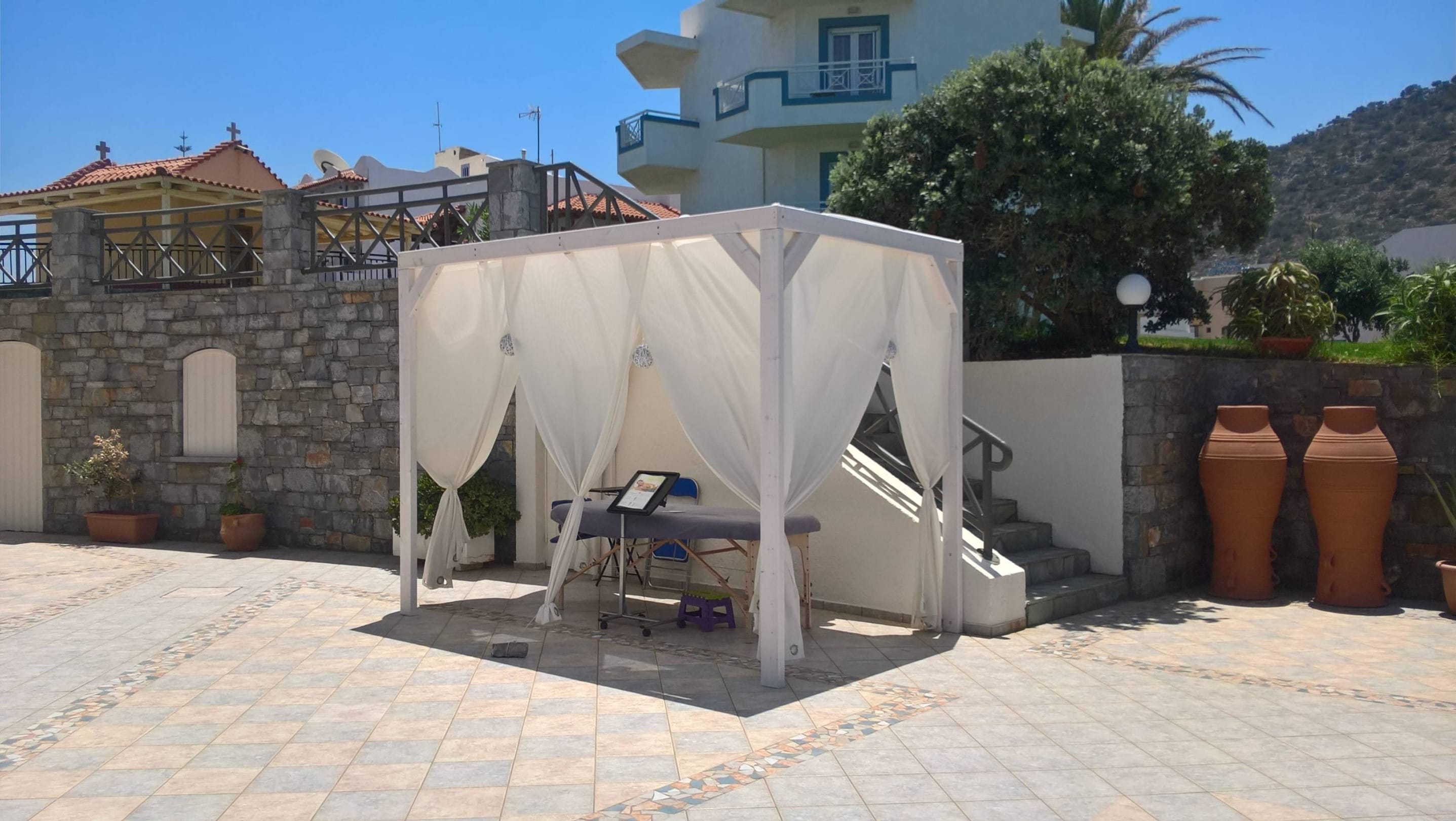 Massage Pagode seitlich neben dem Pool
