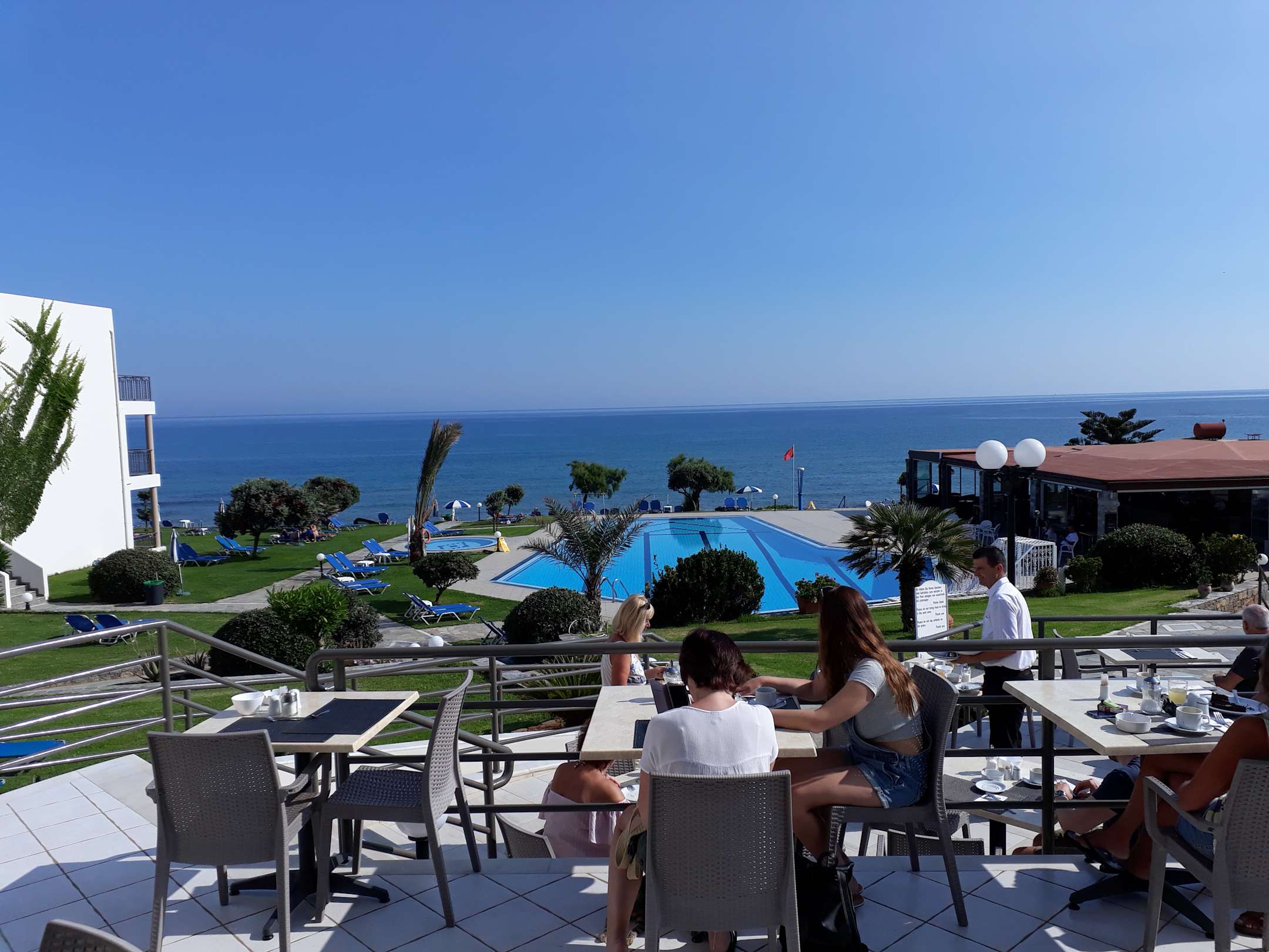 Frühstücksterasse mit Blick übers Meer.