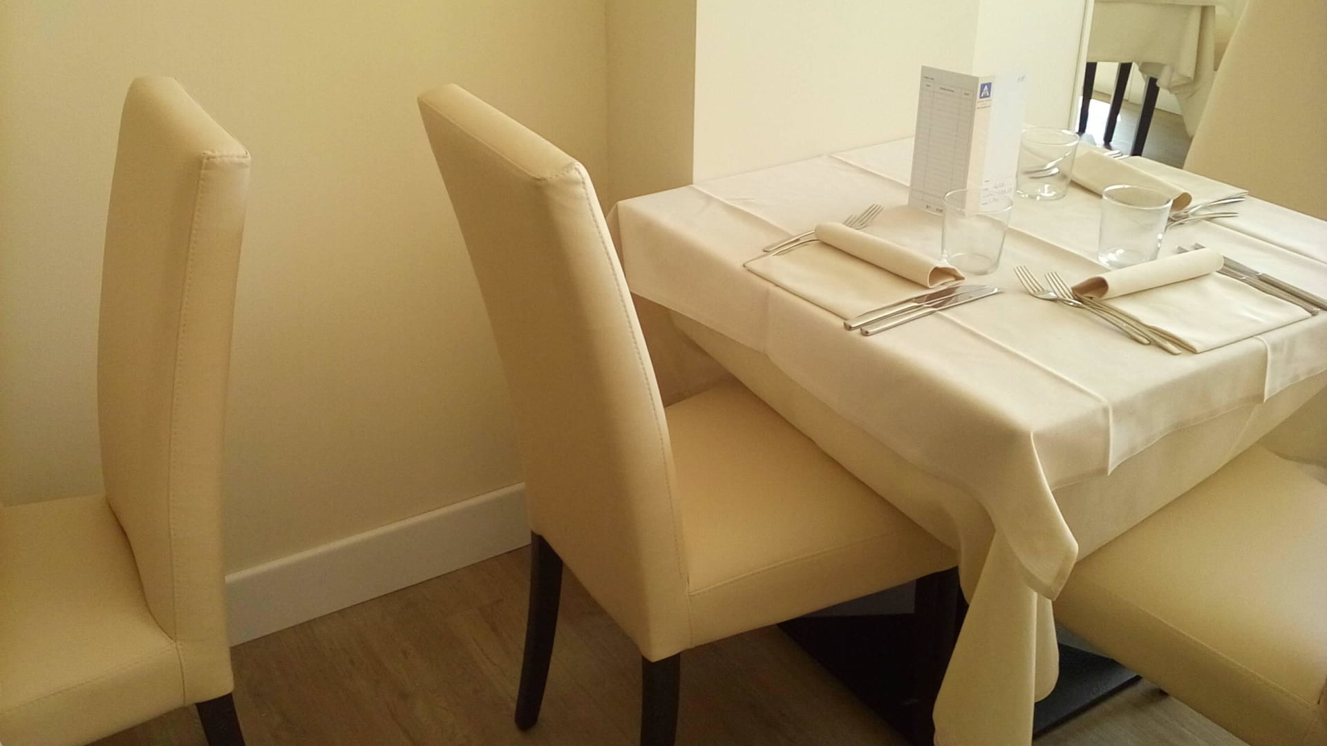 Eng gestellte Tische