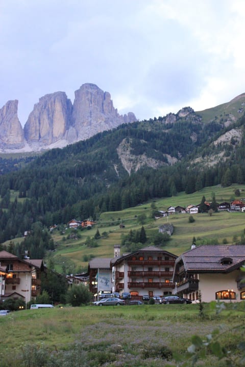 Blick vom Wald aufs Hotel