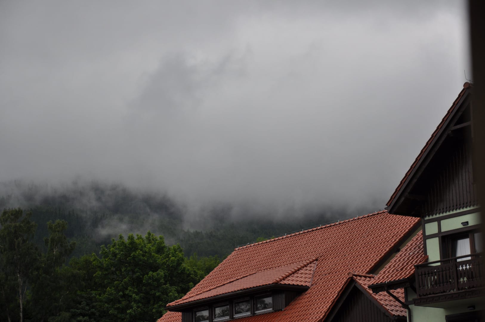 Karkonosze we mgle - widok z okna hotelowego