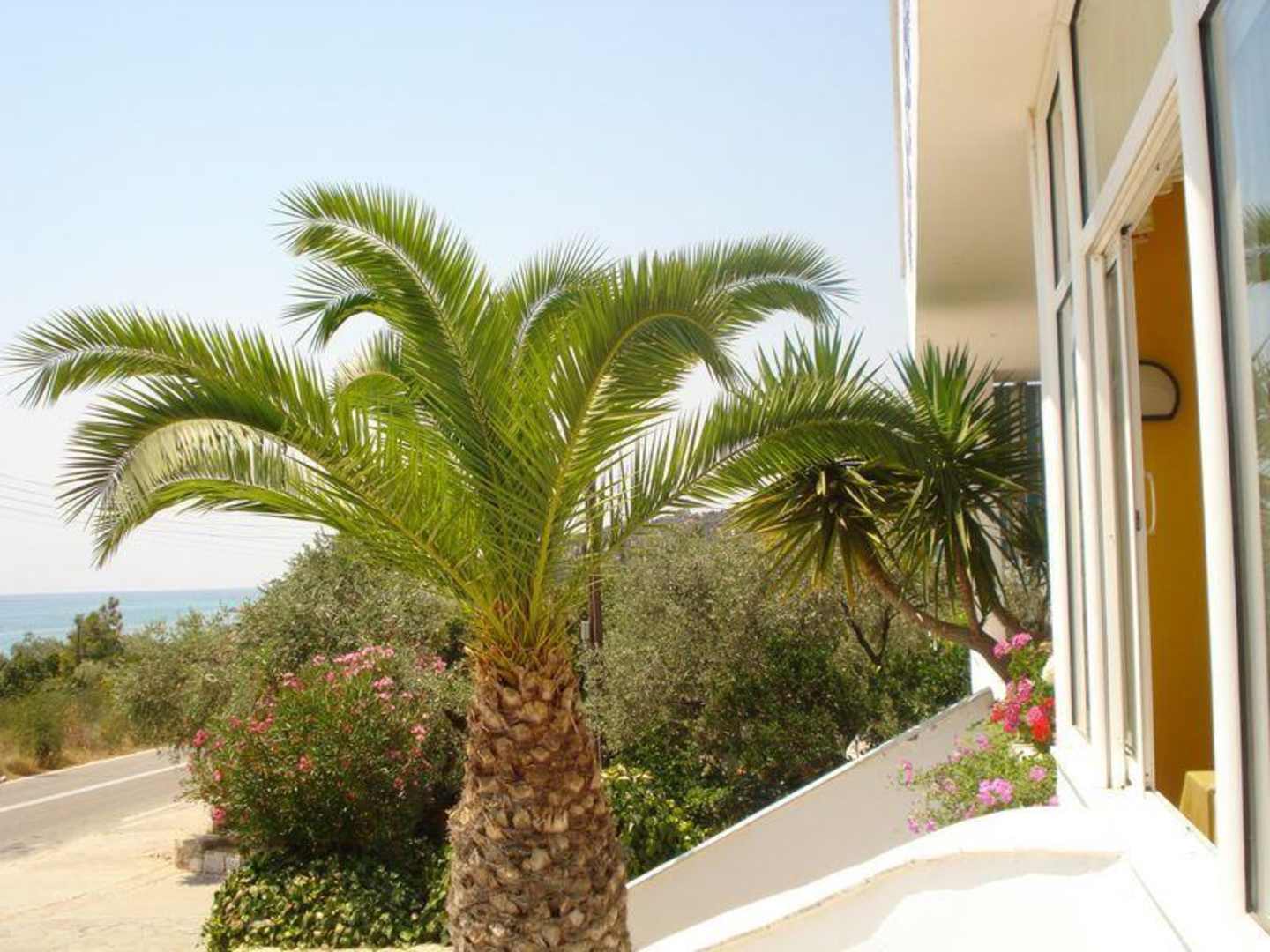 Przed hotelem w oddali plaża i morze