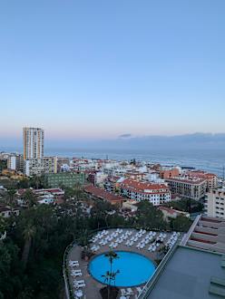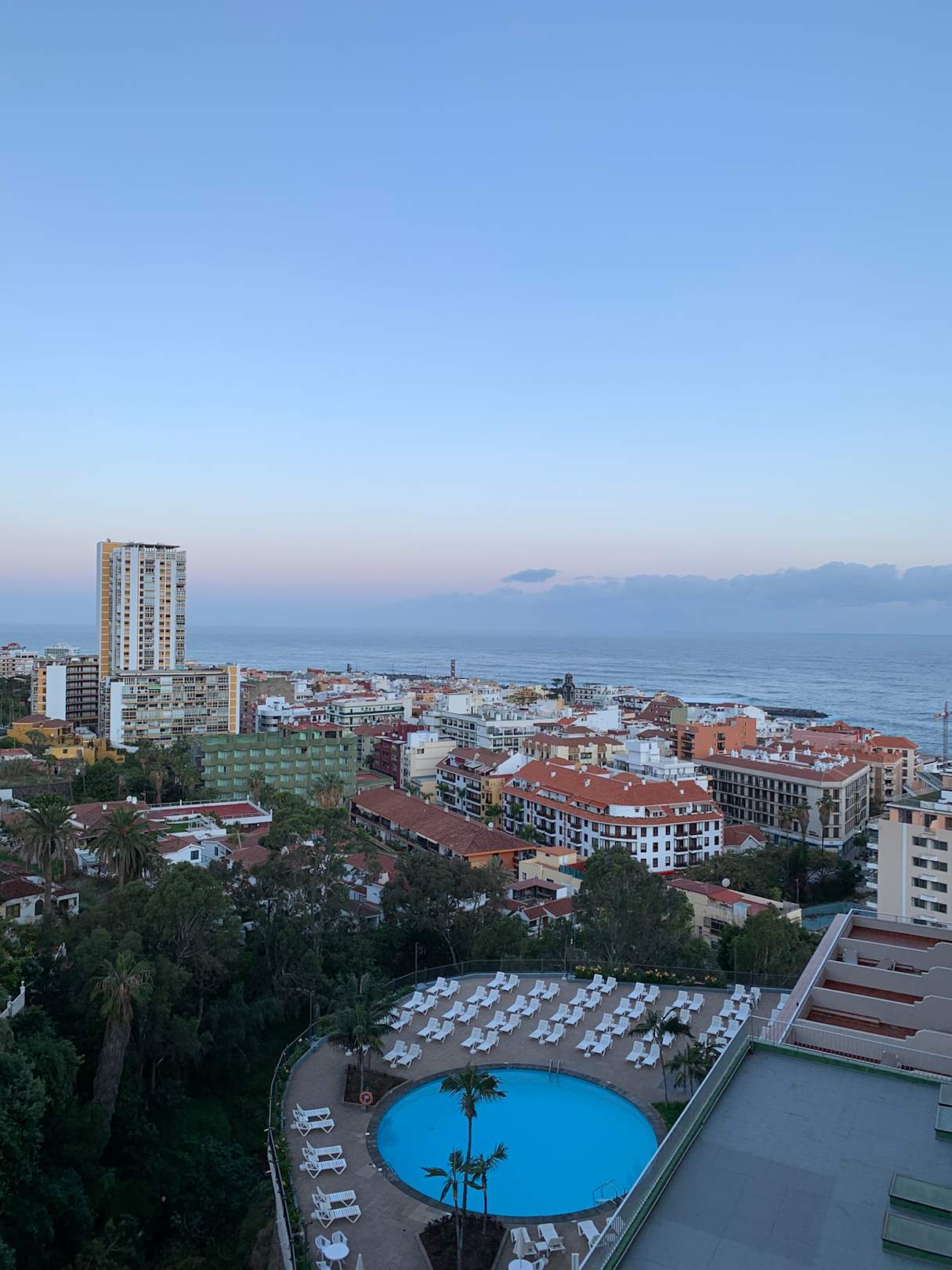 Ausblick morgens auf Pool und Meer