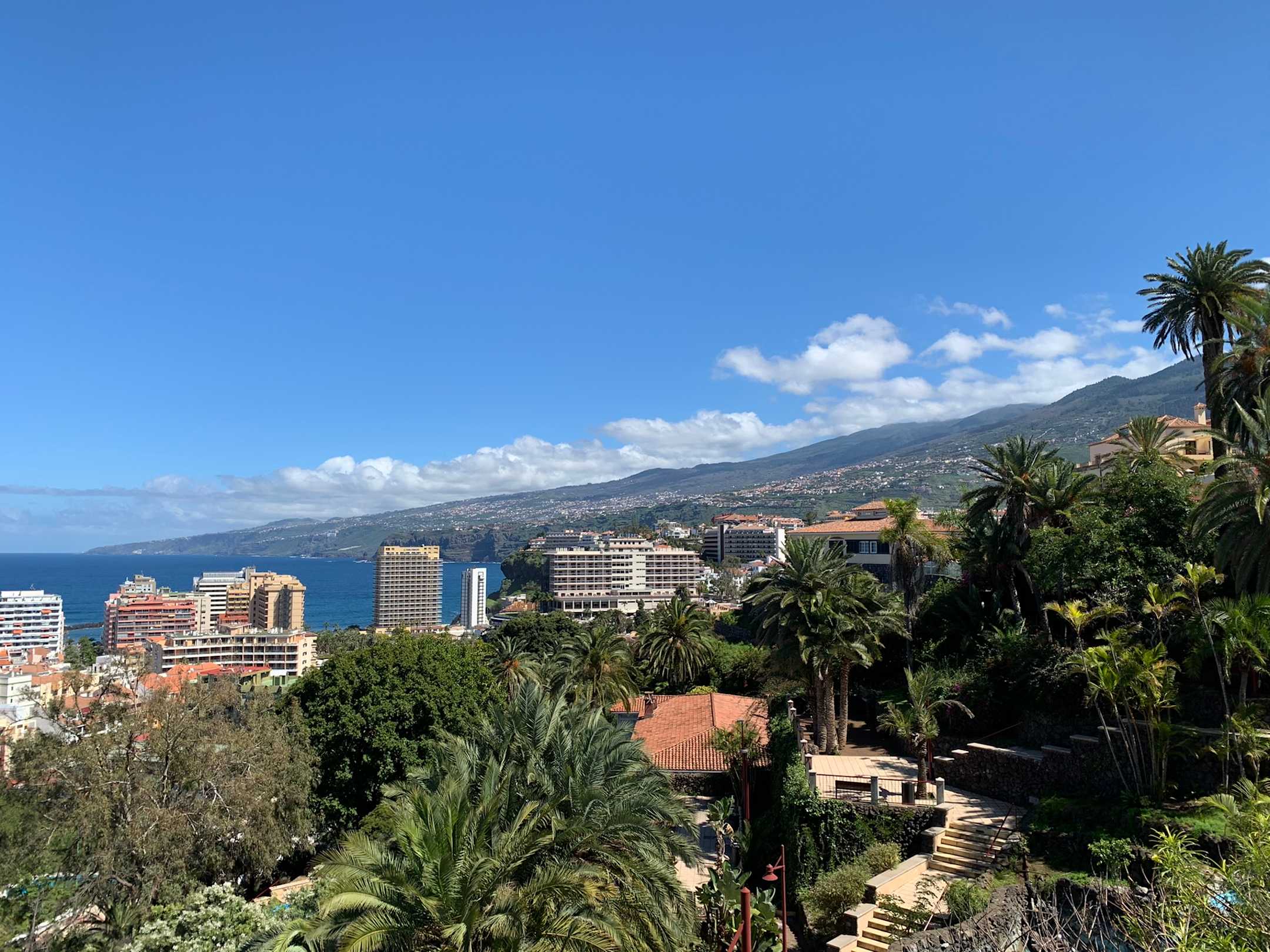 Blick aufs Hotel (Mitte) vom Taoro-Park.