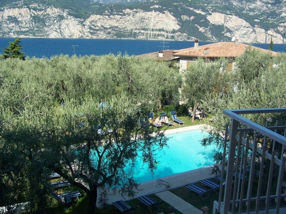Pool im Hotel AugustaDies ist eine Aufnahme aus dem Fenster unseres Zimmers vom Garten mit dem Schwimmbad vom Hotel Augusta in Malcesine.