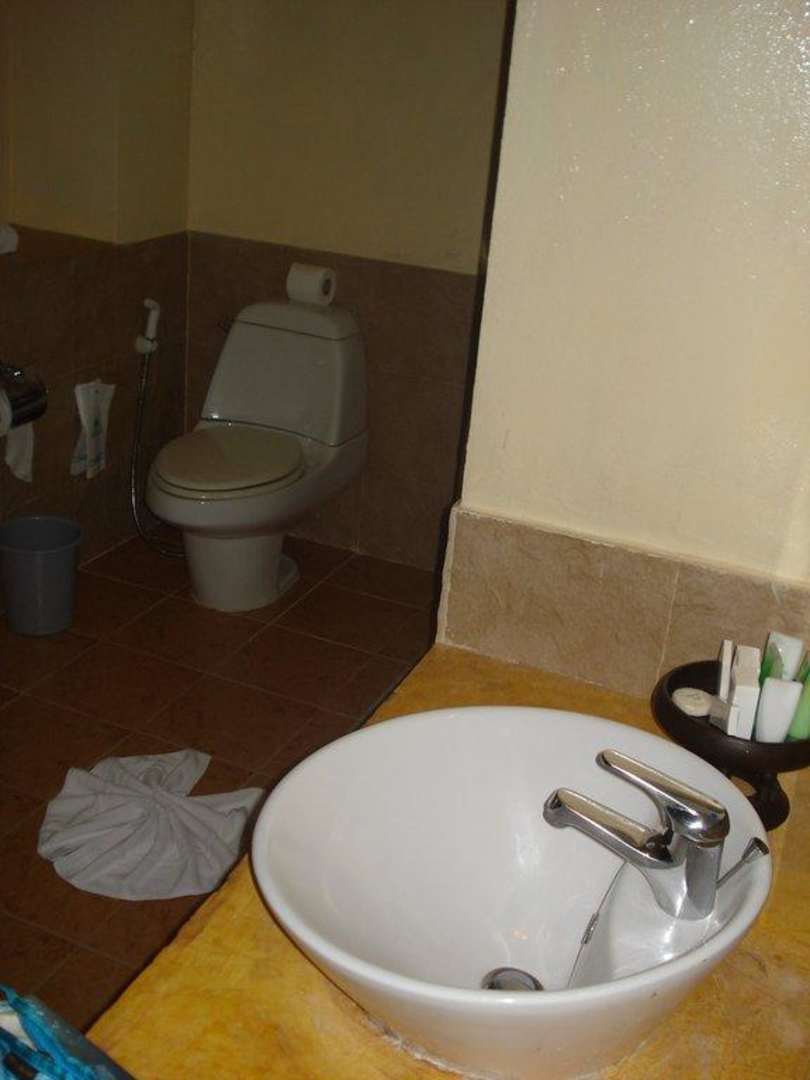 Waschtisch und Toilette in dem sehr geräumigen Bad