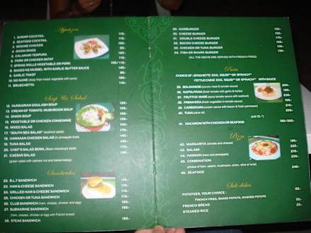 Speisekarte des Hotel-Restaurants