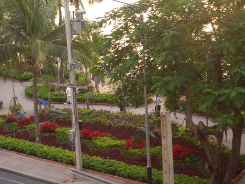 Ausblick vom Balkon, nach dem Grünstreifen kommt das Meer