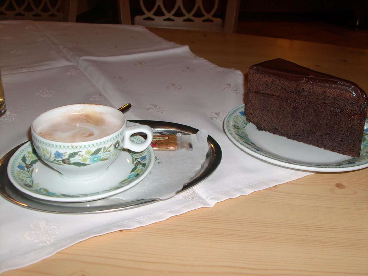 Kaffeepause Nach einen langen Skitag war dies genau das richtige, von der Sachertorte rechts im Bild konnten 2 davon essen. Lecker