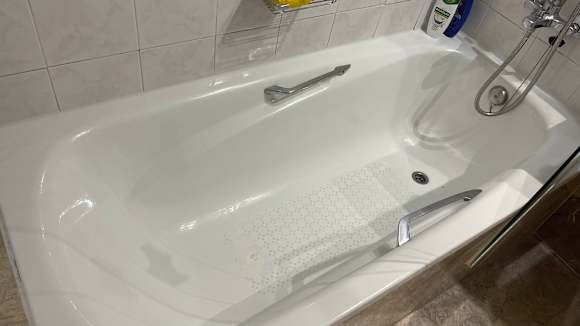Die Badewanne war schon in die Jahre gekommen. Eine Dusche wäre hier besser gewesen.