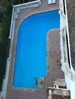 Pool bei dem die liegen und Sonnenschirme defekt sind