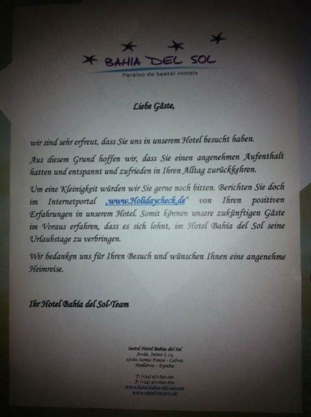 Die Holidaycheck-Bitte der Direktion
