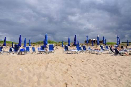 Wettergrenze in den Bergen am Strand sonnig Hotel Baia delle Mimose