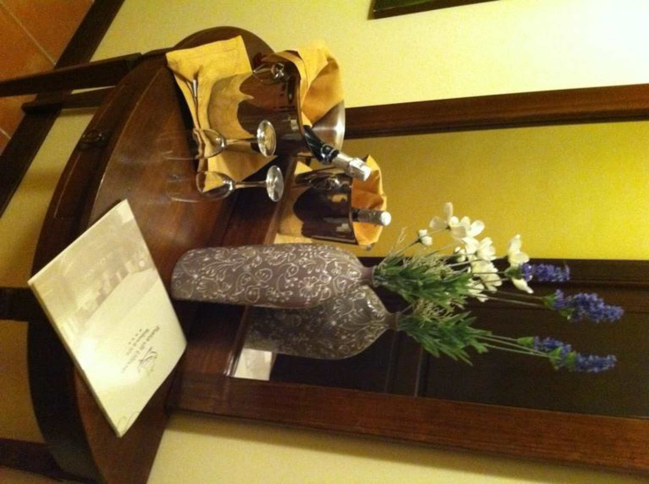 Zur Ankunft fanden wir im Zimmer frische Blumen und eine Flasche Spumante