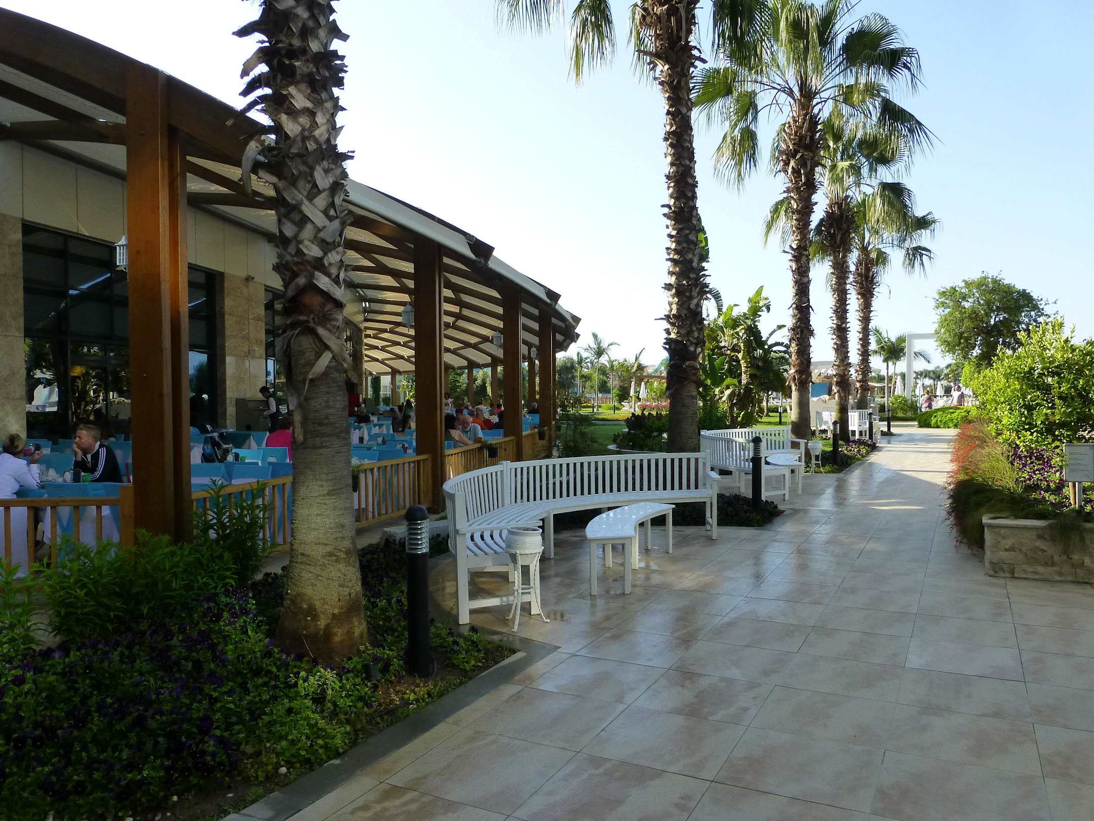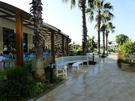 Beim Aussenrestaurant und zum Poolanlage