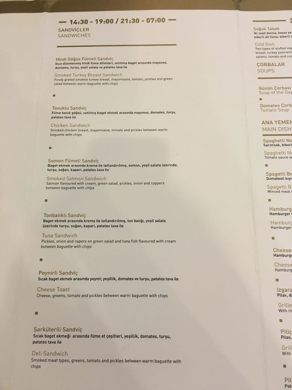 Snackkarte Hotel Baia Lara