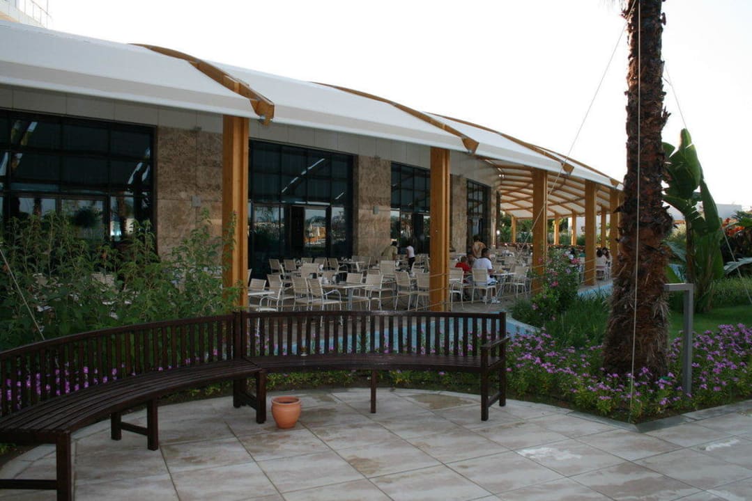Blick auf die Terrasse zum Hauptrestaurant