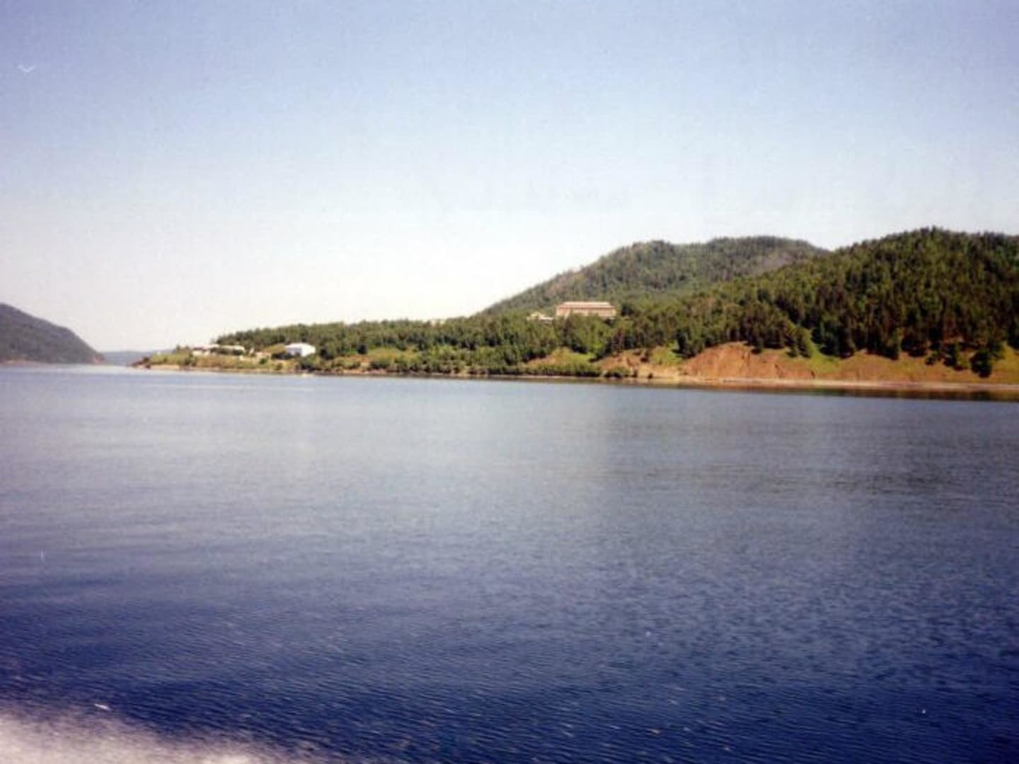 Bick auf das Hotel vom Bajkalsee. Dieses Hotel befindet sich auf einem Berghang und ist ca. 800 Meter von der Seeufer entfernt.