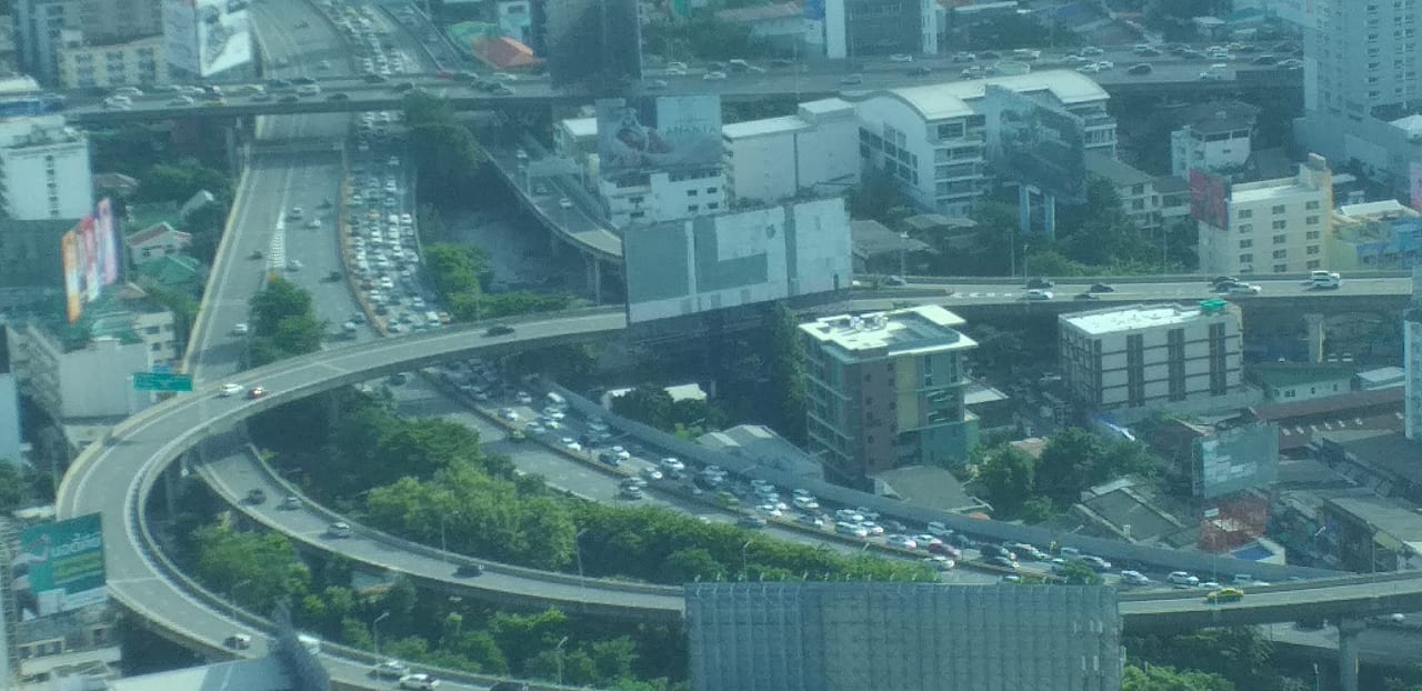 Rush-Hour am Abend aus dem Zimmer des Baiyoke-Sky-Hotel fotografiert