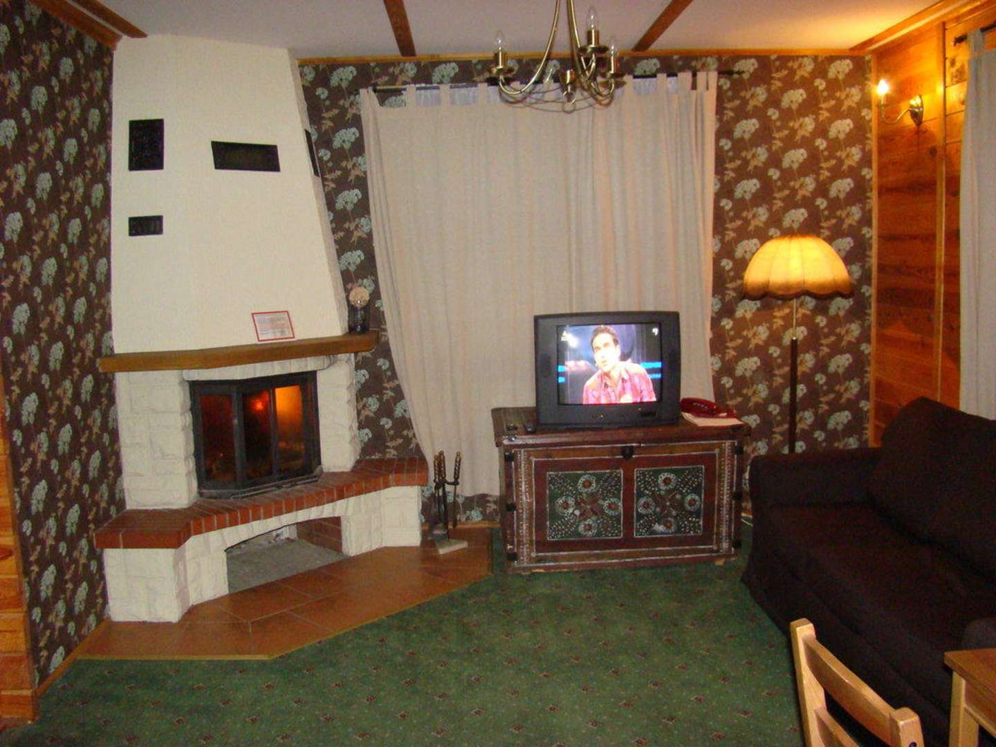 Chata - salon z kominkiem