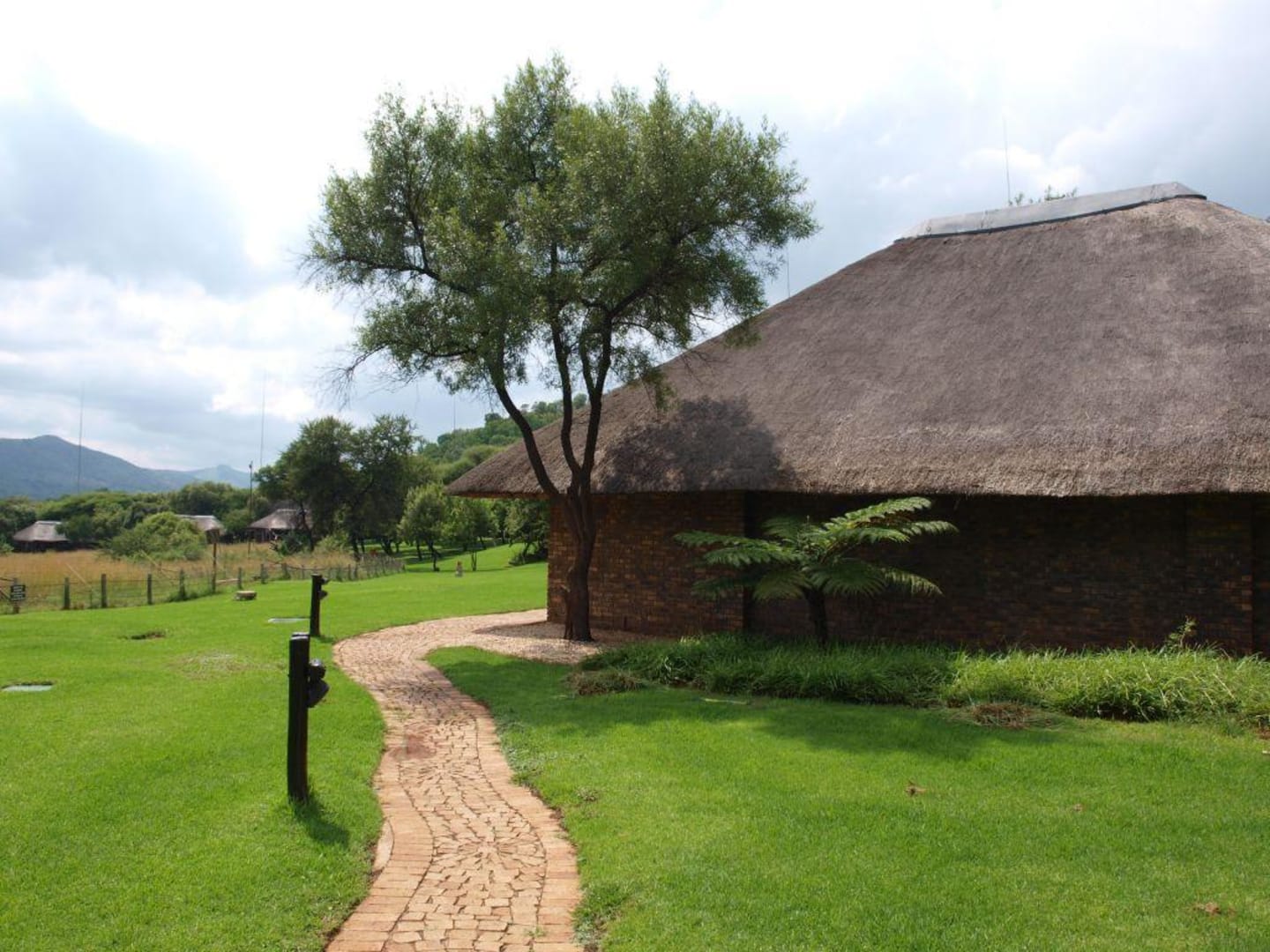 Domek hotelowy płotem oddzielony od buszu