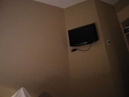 Der Blick auf den Fernseher vom Bett aus.