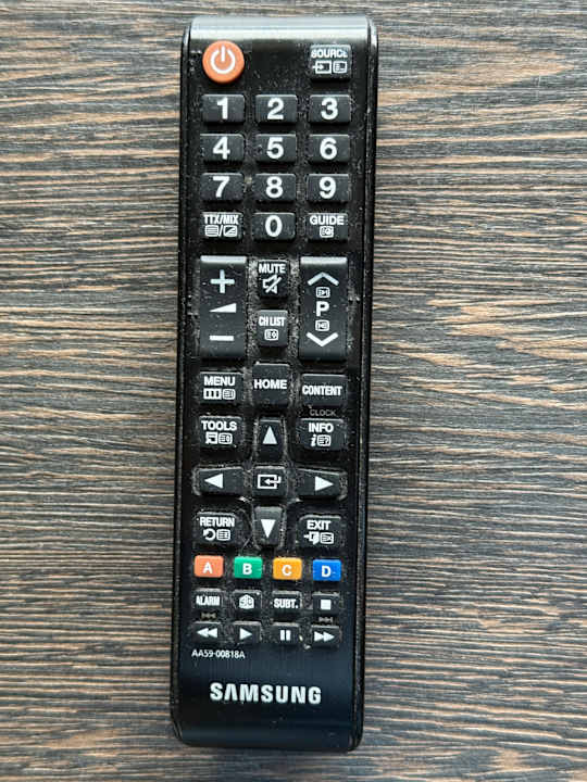 TV-Fernbedienung mit der Patina der letzten Monate ...