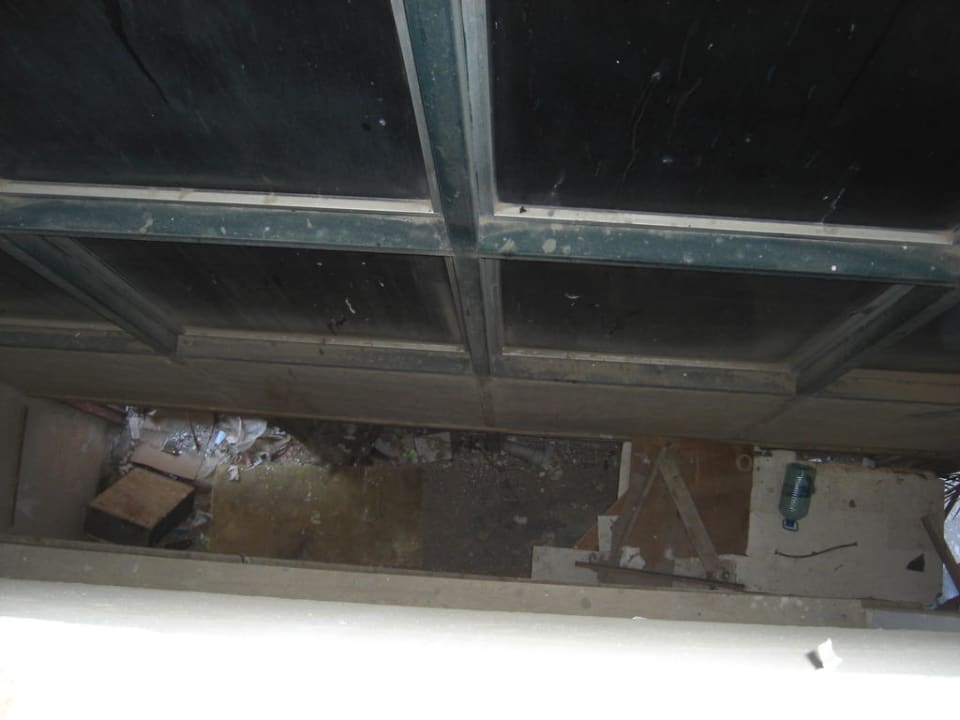 Diese Bild wurde im Treppenhaus aufgenommen, ein Blick hinter das Treppengeländer, man sieht also einen Zustand wie er dort seit Bauende des Hotels bis heute fortbesteht.