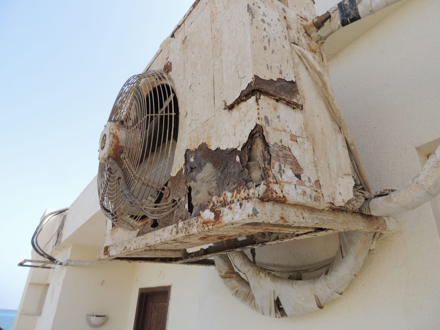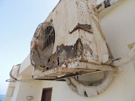 Verrottete Klimaaußengeräte im gesamten Hotelbereich