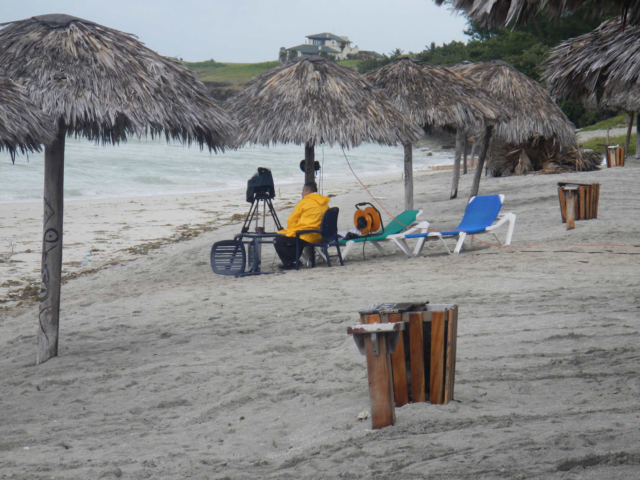 Filmteam von CNN, die vom Hotelstrand über den Tropensturm berichteten