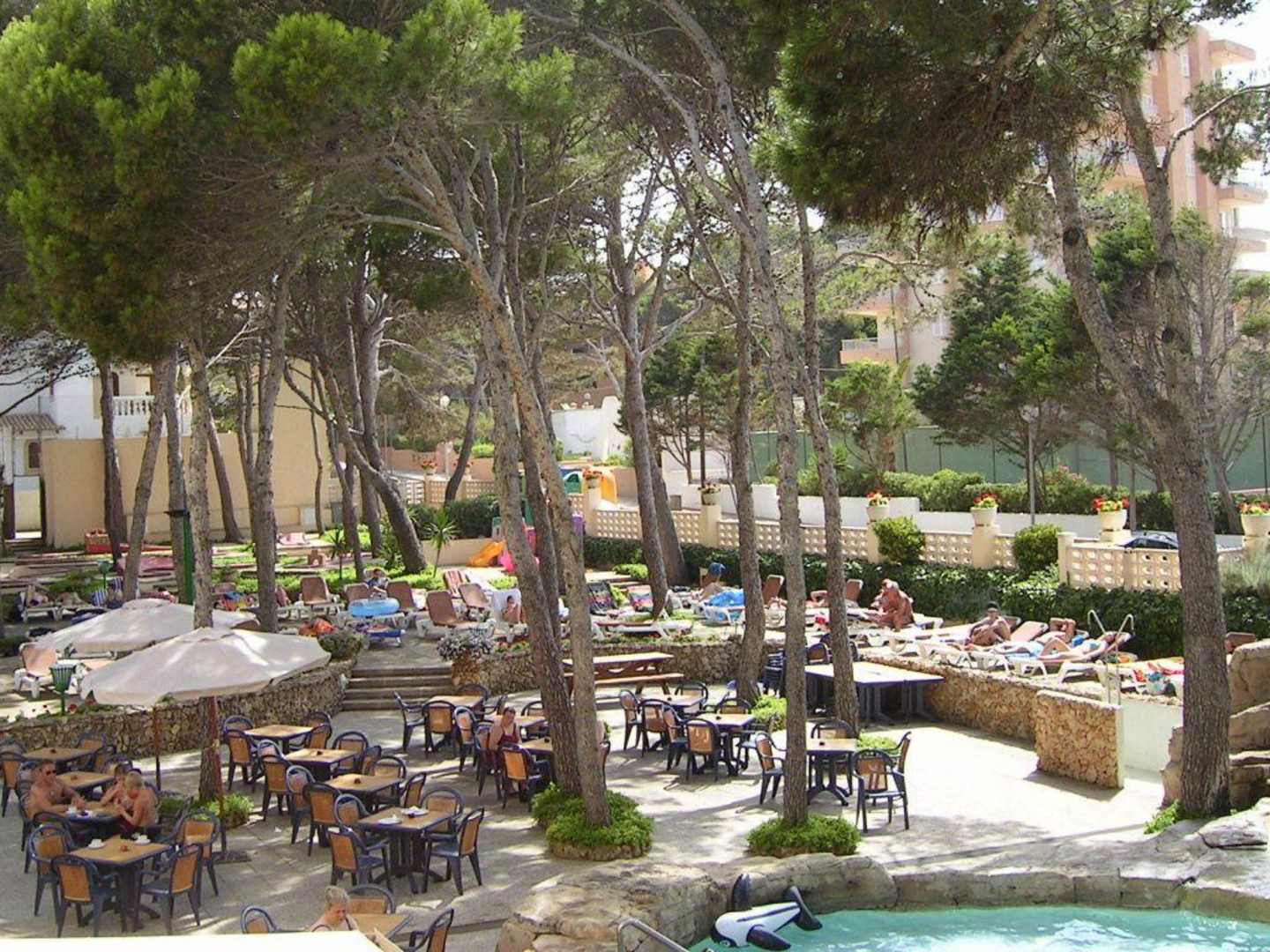 Blick von Zimmer 222 auf den Außenpool.