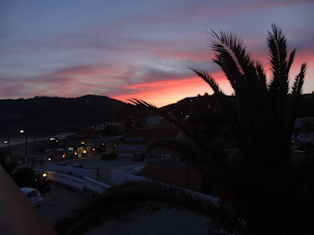die Sonne ist hinter den Hügeln von Afionas untergegangen