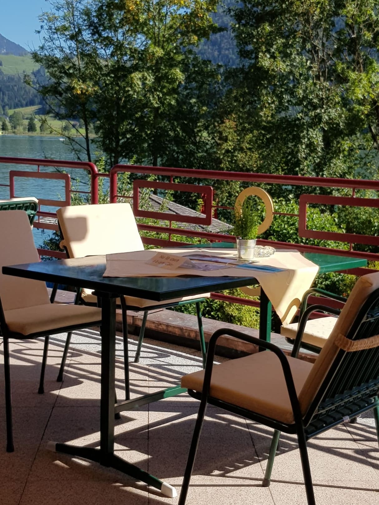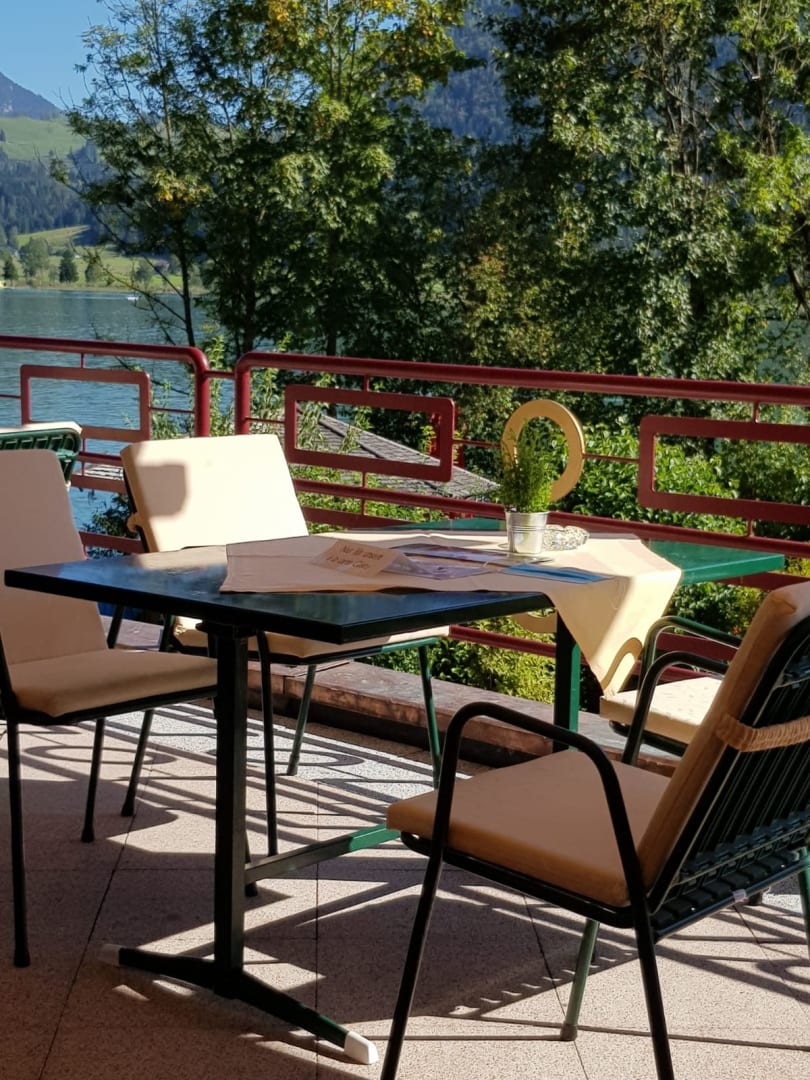 Seeblick bei den Mahlzeiten ist nur den Gästen von draußen vergönnt. Sind die Hotelgäste 2. Klasse? Wir haben für die Vollpension viel Geld bezahlt und hätten uns gern auch raus gesetzt.