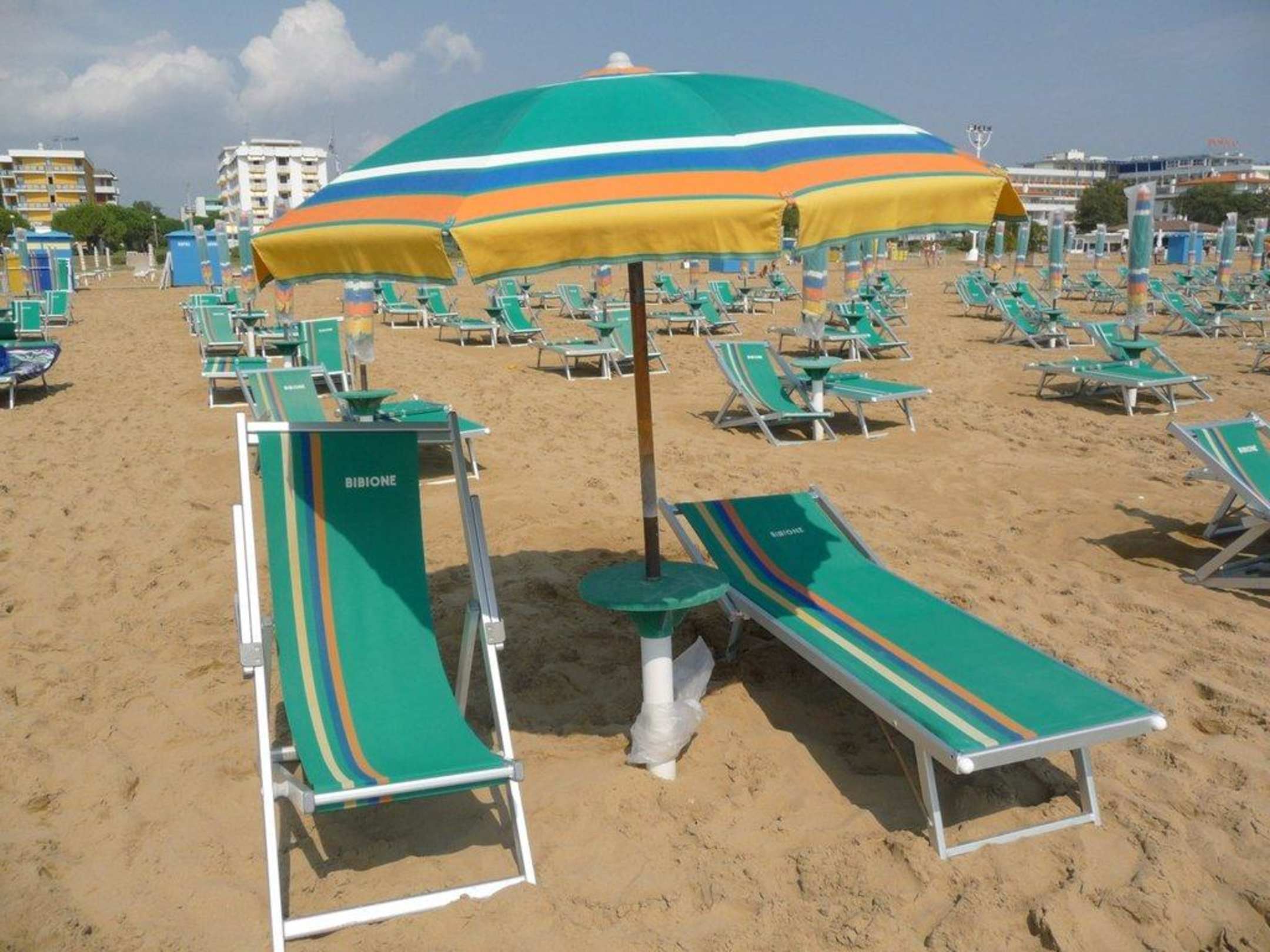 Liegestuhl, Liege und Sonnenschirm