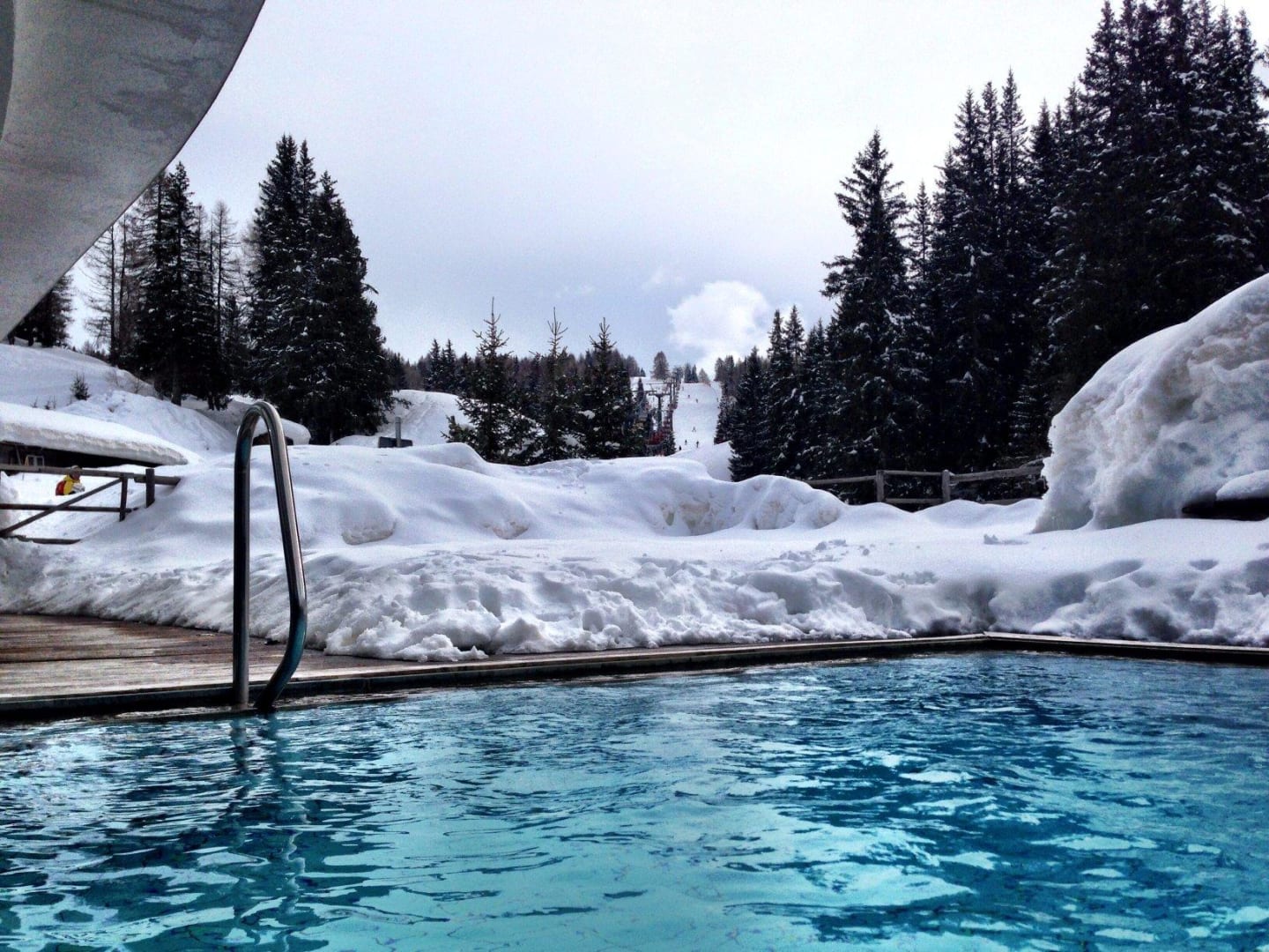 Blick auf die Piste aus dem Pool