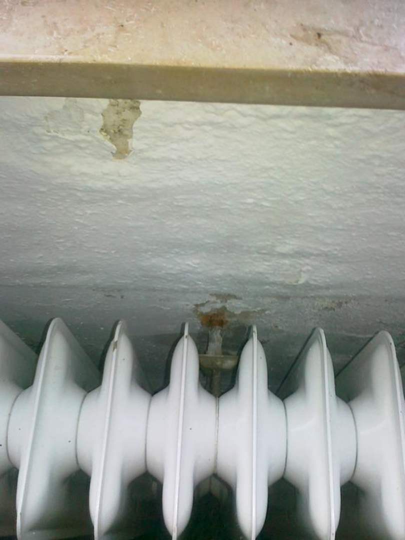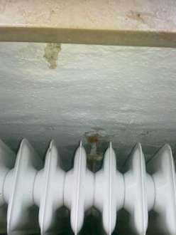Wandkunst unter dem Fensterdas ist die Wand unter dem Zimmerfenster, Farbe abgebröckelt und dahinter ein Allergen-Depot für Allergiker