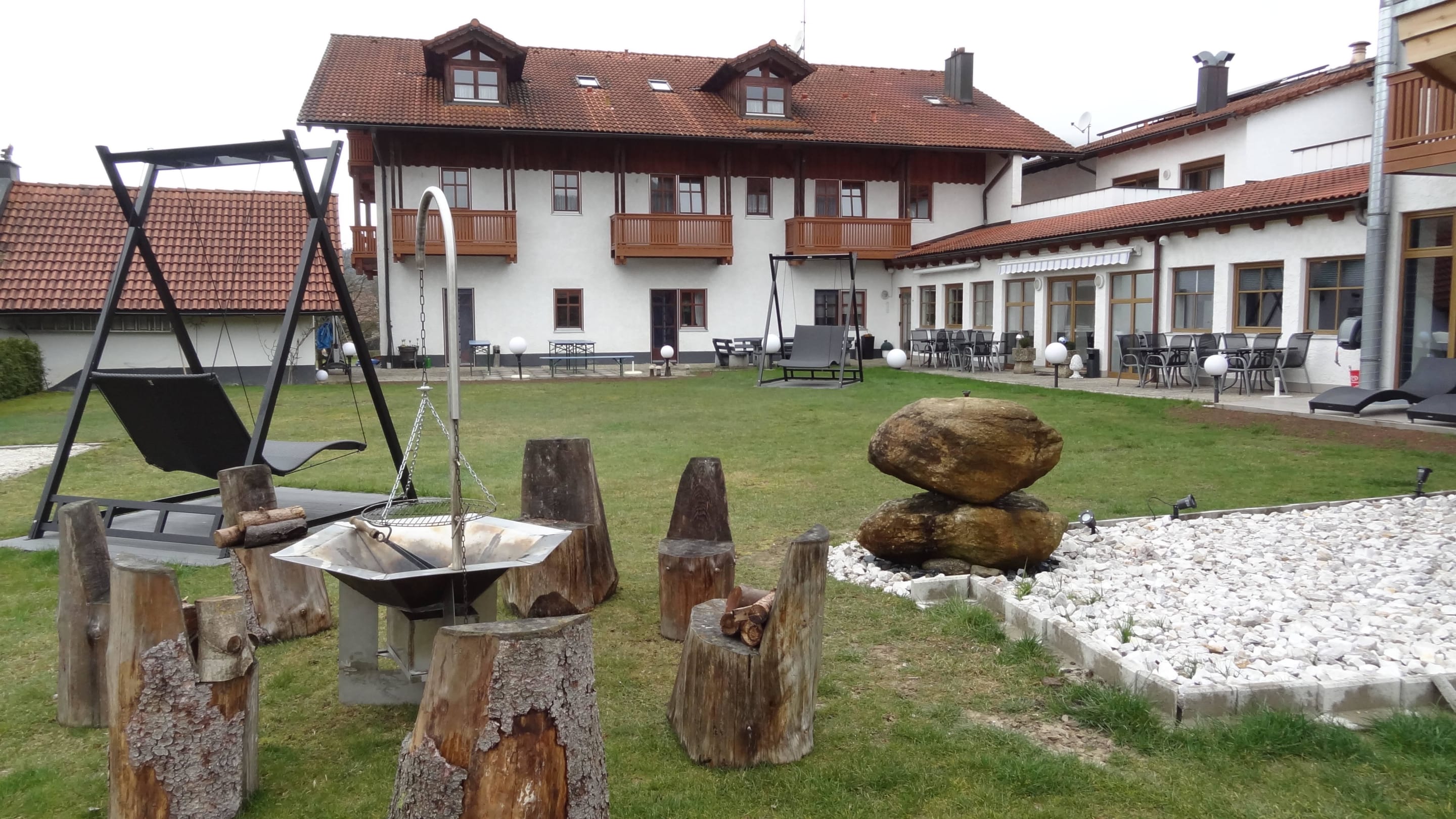Hotel Rückseite und Garten
