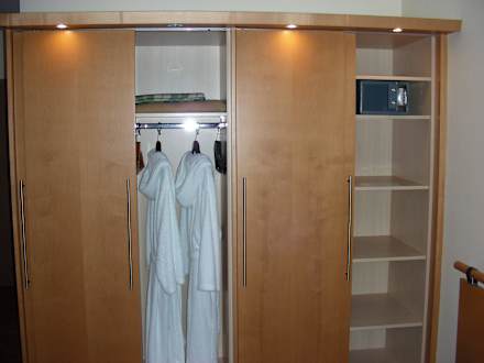 Schrank mit Bademänteln und Safe