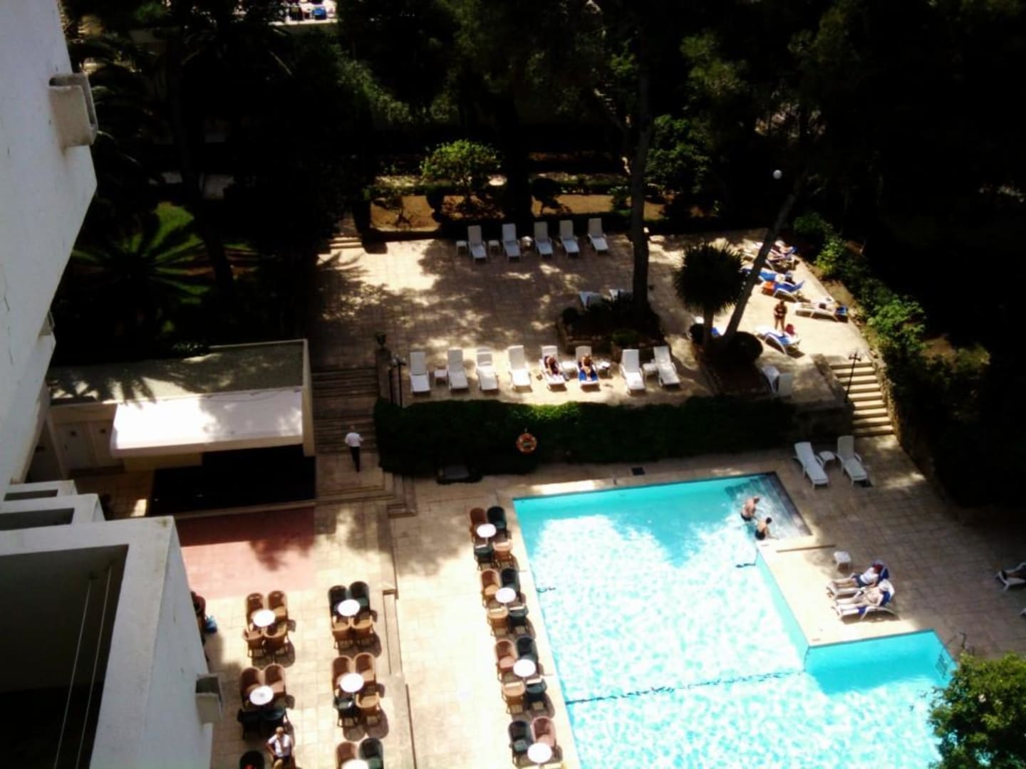 Blick vom 6. Stock auf den Pool