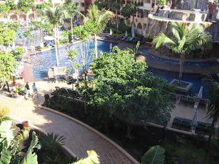 Blick vom Dach auf den Hauptpool