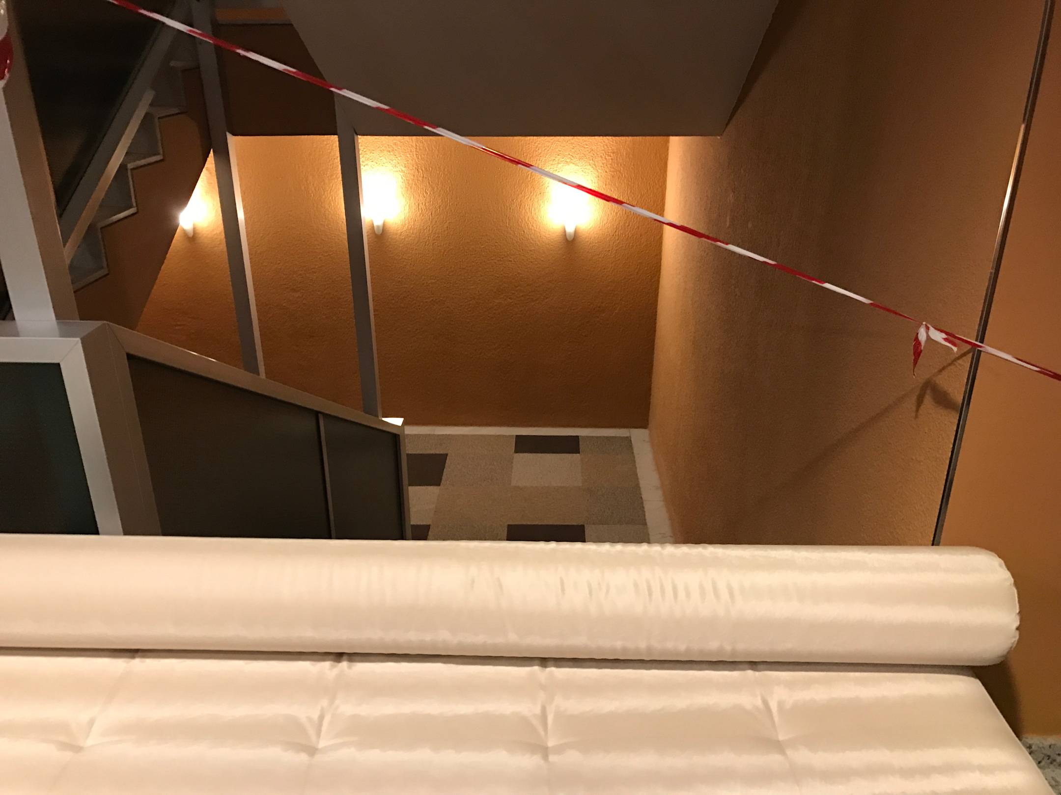 Treppenhaus für Sanierungsarveiten "gesperrt". Muss ja keiner wissen, dass die 12. Etage komplett entkernt wird... sonst werden einem die dreisten Lügen nicht mehr geglaubt