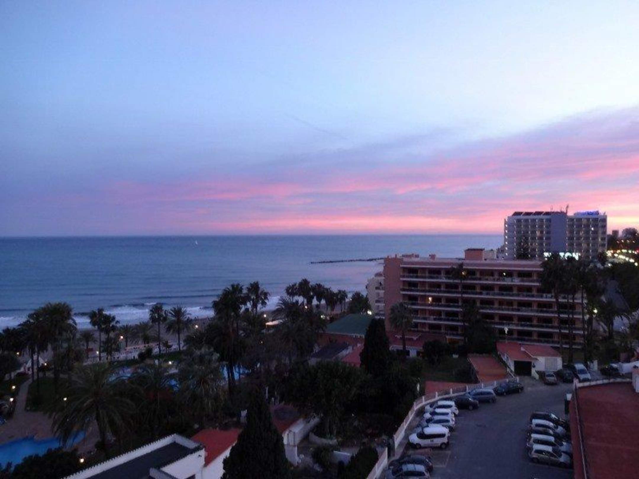 Blick vom Balkon zum Meer am Abend