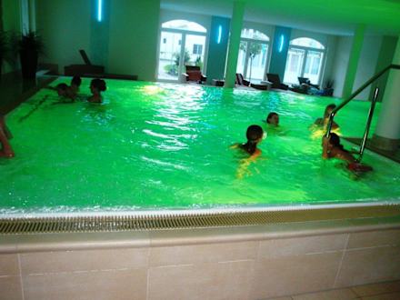 Schwimmhalle in grünem Licht