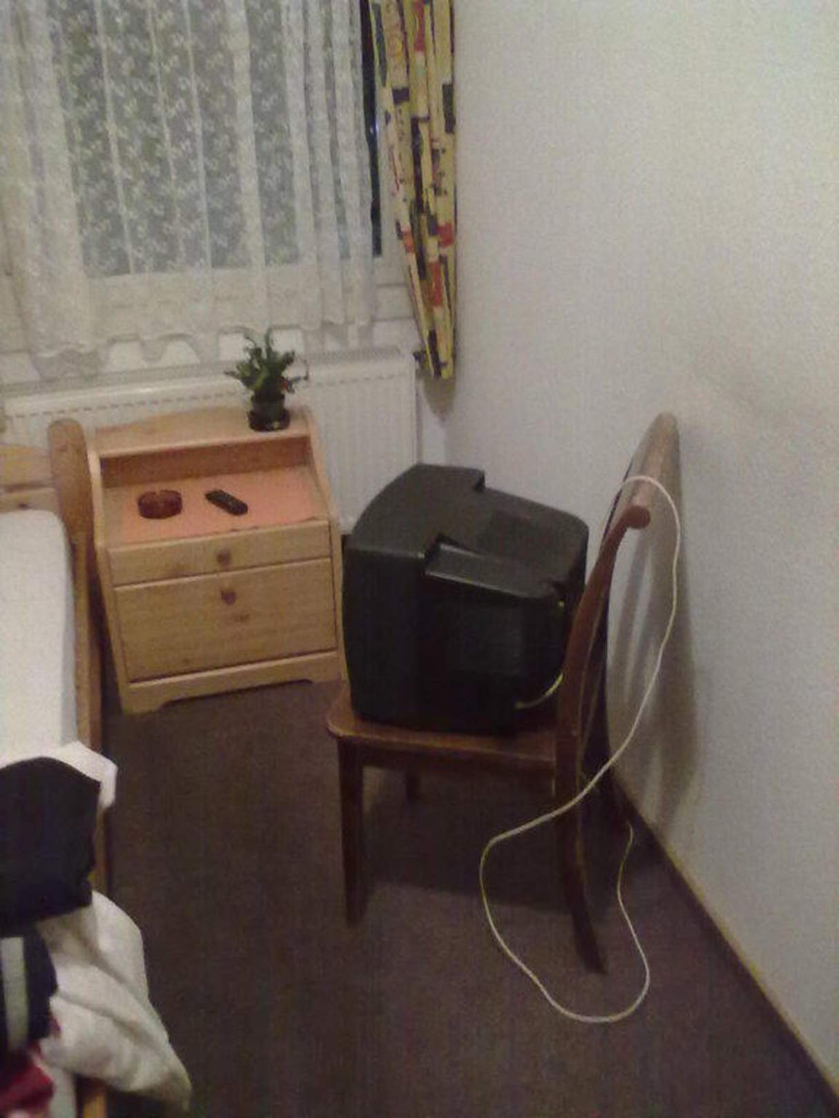 Zimmer mit Fernseher auf einem alten Stuhl