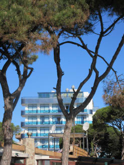 Blick vom Strand auf das Hotel