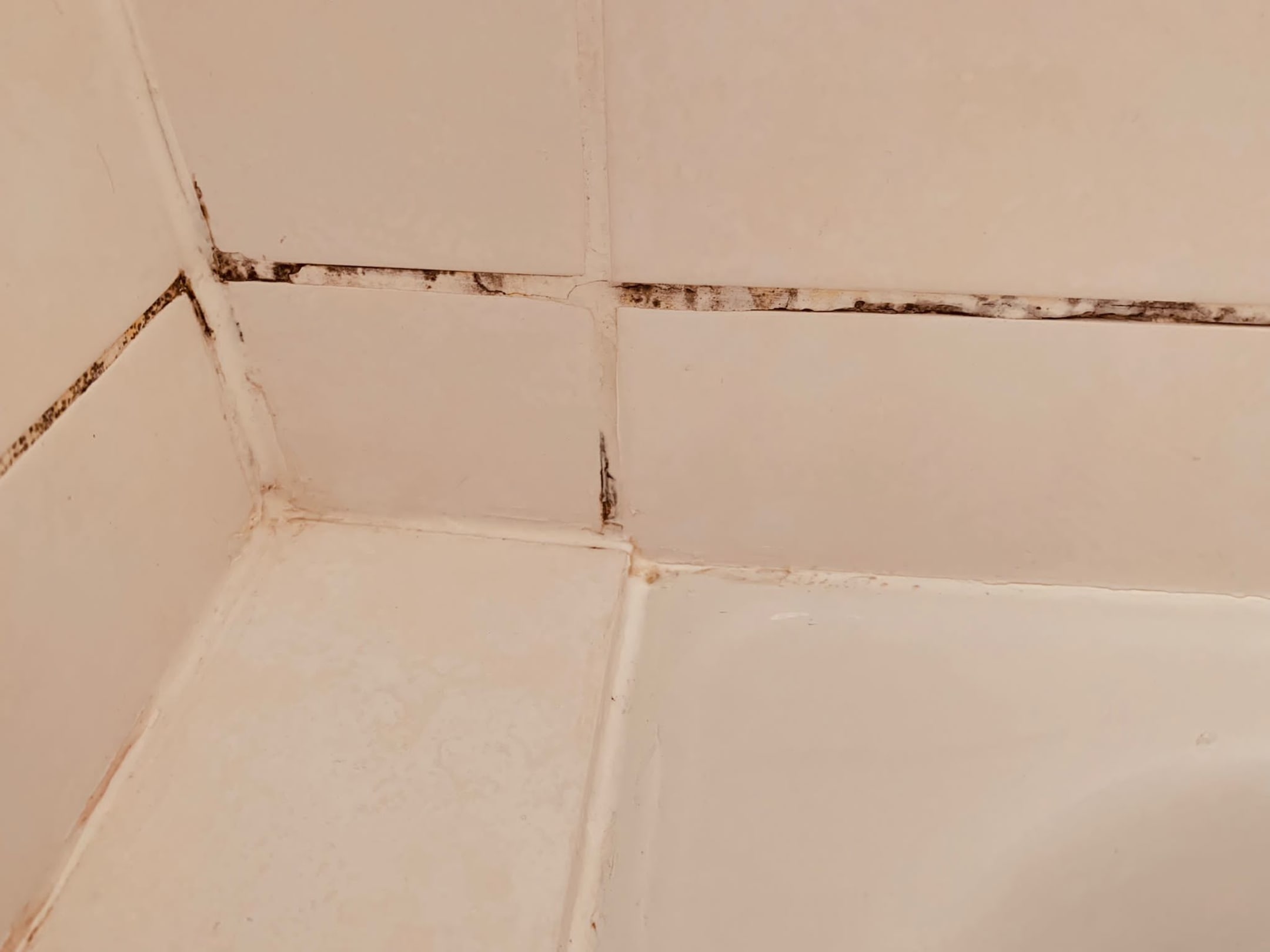 Schimmel in der Dusche von unten bis an die Decke.