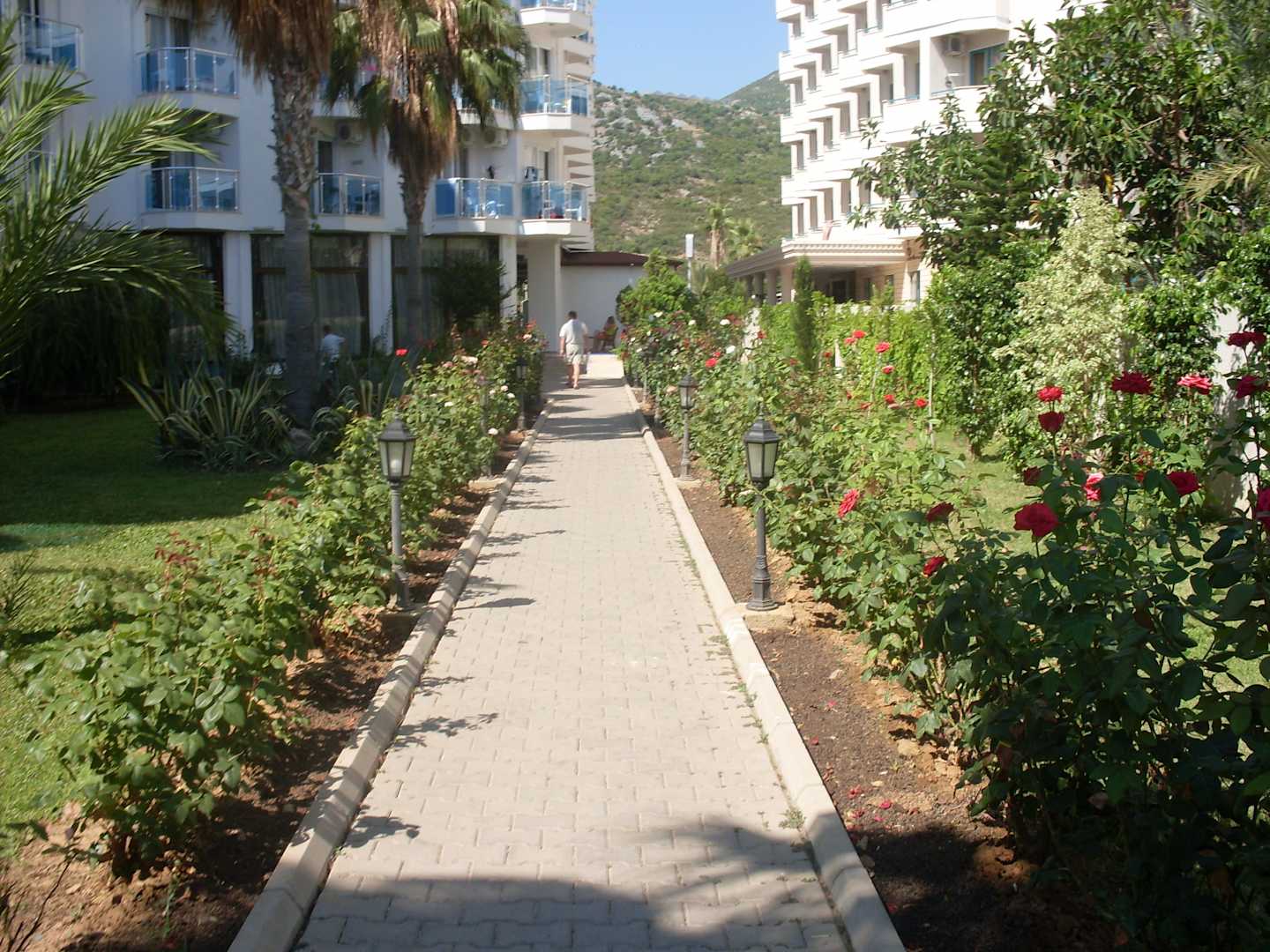 Gartenweg mit Rosen gesäumt